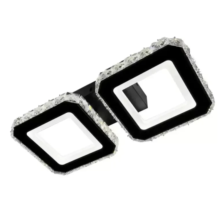 Lustra LED cristal QUADRIS 24W, 2 Patrate, lumina Rece/Calda/Neutra, Dimabila, Negru